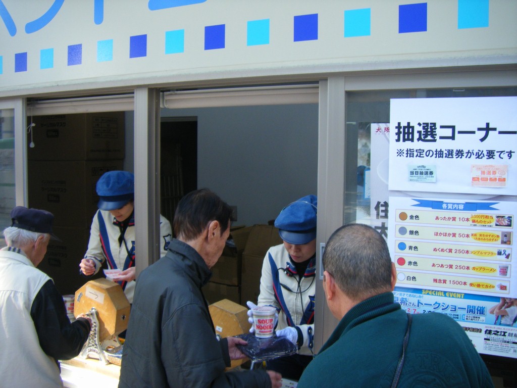 当日の朝、雨が降ってどうなることかと思いましたが、スタート受付9:00には空も晴れ渡り、絶好のウォークラリー日和となりました。 参加者は芦屋の素晴らしい街並を、途中、美術館や文化施設なども楽しみながら歩き、大満足のウォークイベントとなりました。 今回、ウォークの大敵「雨」に対応できる準備物などいろいろ勉強にもなりました。 弊社アトムブラザーズでは健康的に楽しめるウォークイベントの企画(コース設定からマップデザインまで)から当日運営まで一貫してプロデュースいたします。 ぜひとも皆さまアトムをごひいきによろしくお願いいたします。 2/8中澤裕子さんに続き、2/26は住之江競艇場で元モーニング娘。の保田圭さんトークショー&ライブステージが行われ、アトムブラザーズ音楽出版(株)がその企画から実施運営に至るまで行いました。 当日はあいにくの雨となりましたが、たくさんのお客様に来場していただき、トークショーでは保田圭という一人のアーティストとしての魅力が存分に伝わるステージとなりました。ライブで披露していただいたLOVEマシーンは時代を駆けた名曲、大盛り上がりのイベントとなりました。 イベント企画会社「アトムブラザーズ」では、有名タレントのブッキングから当日の進行、ステージ音響に至るまで一括してプロデュースいたします。 費用対効果の見込める“あっと驚くアイデアイベント”をモットーに、社員一同邁進するアトムをどうぞよろしくお願い致します。いつでもお気軽にご連絡お待ちしております。 2月23日(火)、24日(水)は大阪住之江競艇場で「冬のあったかガラポン抽選会」を弊社アトムブラザーズが企画、実施運営しました。 内容は期間中、事前に配布した抽選券を当日お持ちのお客様先着4000名様を対象に、冷え込むこの時期にもらってうれしい賞品が当たる抽選会に参加できるという内容。 ■以下景品内容 あったか賞 20本(金)・・・鍋ものセット(3000円相当) ほかほか賞100本(銀)・・・箕面 実生ゆずポン酢 ぬくぬく賞500本(青)・・・シンプルマフラー あつあつ賞500本(赤)・・・カップラーメン 残念賞 3000本(白)・・・使い捨てカイロ1個 当日は抽選会目当てにたくさんのお客様にお越しいただき、大賑わいかつ大満足のイベントとなりました。 企画書作成から当日運営まで是非ともアトムブラザーズにお任せくださいませ。 2/11(木・祝)・2/14(日)、イズミヤ枚方にて旭化成商品を訴求する画期的な店頭推進販売イベント、通称“DJセール”を運営させていただきました。 このイベントは従来の店頭推販とは異なり、よりエンターテイメント性、コミュニケーション性を重視した新しい店頭販売スタイルです。 内容はディスクジョッキーに見立てたスタッフが、音声や実演を駆使し、 一度に多数のお客様に対して四感(視覚・聴覚・嗅覚・触覚)に訴える という効果的な販売促進活動。 スペースを選ばず、狭い売場エンドでも実施が可能で販売店の売上UP、館内の盛り上げにつなげます。 今年はサランラップ50周年!関西あらゆる場所でこのDJセールを実施するため飛び回ります!