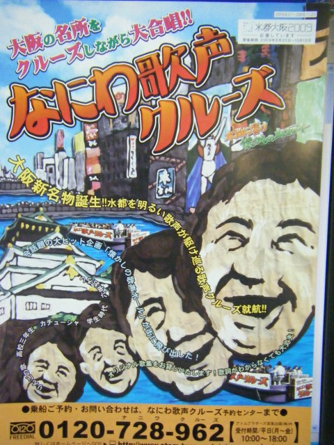 ポスターが刷り上がりました!!! 「水都大阪2009」連携事業として、皆で一緒に歌を合唱しながら船で道頓堀、大川を観光する「なにわ歌声クルーズ」が遂に8月21日(金)からスタートします。 乗船のお申し込みは8月5日(水)より受付開始です。 フリーダイヤル 0120-728-962(なにわクルーズ) アトムブラザーズ音楽出版内「なにわ歌声クルーズ予約センター」まで いつでもご連絡・お問い合わせをお待ちしております。 「なにわ歌声クルーズ」概要 ■日程 8月21日(金)~10月12日(月・祝) 毎週金土日祝日運航 ①16:00~17:30 ②18:00~19:30 ※土日祝日は道頓堀コース、金曜日は大川コースを運航します。 ■定員 70名(※最少遂行人数6名) ■料金 3000円(乗船料・歌集レンタル含む) |