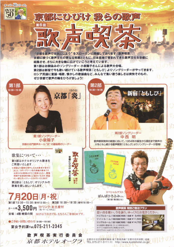 × [PR]上記の広告は3ヶ月以上新規記事投稿のないブログに表示されています。新しい記事を書く事で広告が消えます。 7月20日(月・祝)は京都ホテルオークラにて「第6回歌声喫茶-京都にひびけ我らの歌声-」が開催され、600名様を超えるお客様にご参加いただきました。 今回の歌声は2部構成で、第1部は京都の名門歌声ホール“炎”の最後期のソングリーダーとしてお馴染みの小泉陽子さん、第2部は新宿で今も歌い続けている歌声喫茶「ともしび」のソングリーダーに登場していただきました。さらにスペシャルゲストに「ばんばひろふみさん」を迎え、終始笑顔の絶えない素晴らしいイベントとなりました。 みんなで集い歌うことを通じて心が1つになれる歌声喫茶、我々はこのイベントを通して皆さまに元気を、地域貢献することができればと考えております。歌声喫茶の輪が広がっていけばと願っております。 8月21日から始まる「なにわ歌声クルーズ」のほうもよろしくお願いいたします。 なにわ歌声クルーズのホームページが完成しました!←詳細はコチラをクリック 7/18(土)〜20(月・祝)の3連休はマリンピア神戸の船の広場(屋外)にて巨大金魚すくい大会が実施され、その周りの縁日コーナーを我々アトムブラザーズが企画・運営させていただきました。 今回は、スーパーボールすくい、ヨーヨーつり、人形すくいの水モノ3ブースで1回100円でお遊びいただくという内容。 3日間にわたり微妙な曇り空ではありましたが、大きな混乱も無く無事に終了する事ができました。初日、2日目、3日目と尻上りにお客様数も伸び、1日を通してお客様が縁日コーナー周辺に居る状況を実現できました。 メインの巨大金魚すくい大会ともうまく連動してイベント全体の盛り上がり感を創出する事ができたと思います。お客様の反応も好評で「楽しかった」というお声をたくさんいただけました。 再確認したことは、やはり縁日は盛り上げてなんぼ!という事です。いい経験を積ませていただきました。今後ともよろしくお願いいたします。