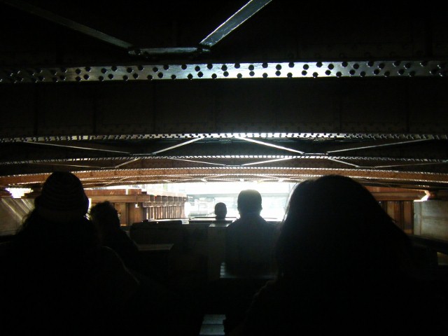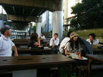 昨日は8/22(日)からいよいよスタートする「なにわ歌声クルーズ」の試乗会がありまして、 アトム社員はもちろん、いつもお世話になってる関係者の方々にも一緒に乗っていただき、 実際のコースを体感してきました。 16:00、歌声船は天満橋の八軒家浜をスタート、東横掘水門~高速下を進んでいきます。 この日はとても暑かったですが、船の上は風が心地良くて意外にも快適でした。 16:40、やがて相合橋、戎橋、道頓堀橋にさしかかり、おなじみの橋の下をくぐりぬけます。 そこら辺のアトラクションなんかよりスリルがあって、断然おもしろかったです。 ちなみに僕は大阪で生まれた男ですが、川から見るナニワは今までと全く違った景色でした。 僕は岸辺の皆さんから手を振られるのに応えながら、ここからみんなで大合唱する様を想像してみました。 ・・・目立つこと間違いなしです! 17:30、湊町リバープレイスを折り返した船が、雄大な大川~八軒家浜へと戻ってきました。 90分間のナニワ歌声クルーズの旅が終わりました。 観光だけでも充分満足できる内容でした、手ごたえありです。